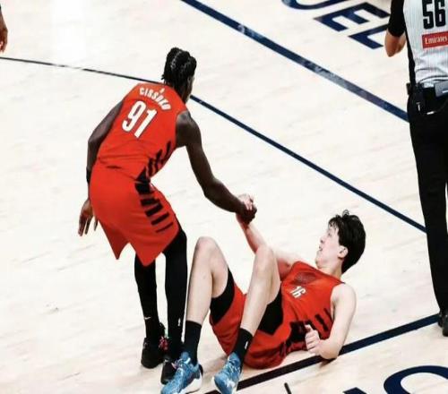 这球裁判没有叫犯规,小杨倒地久久不起