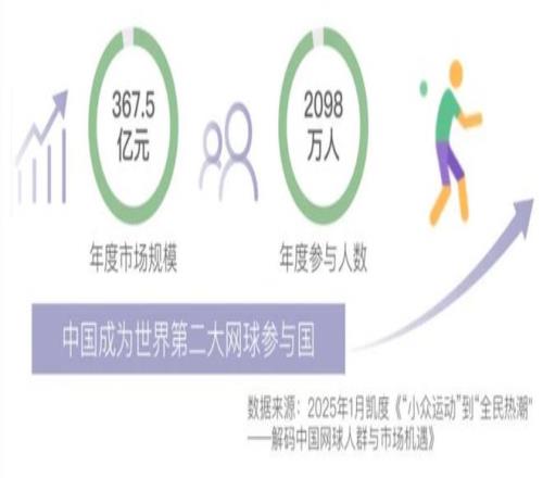 我还查到,在 2025 年的中国,已经有两千多万人在打网球。而这个数据在十年前还不到两百万。